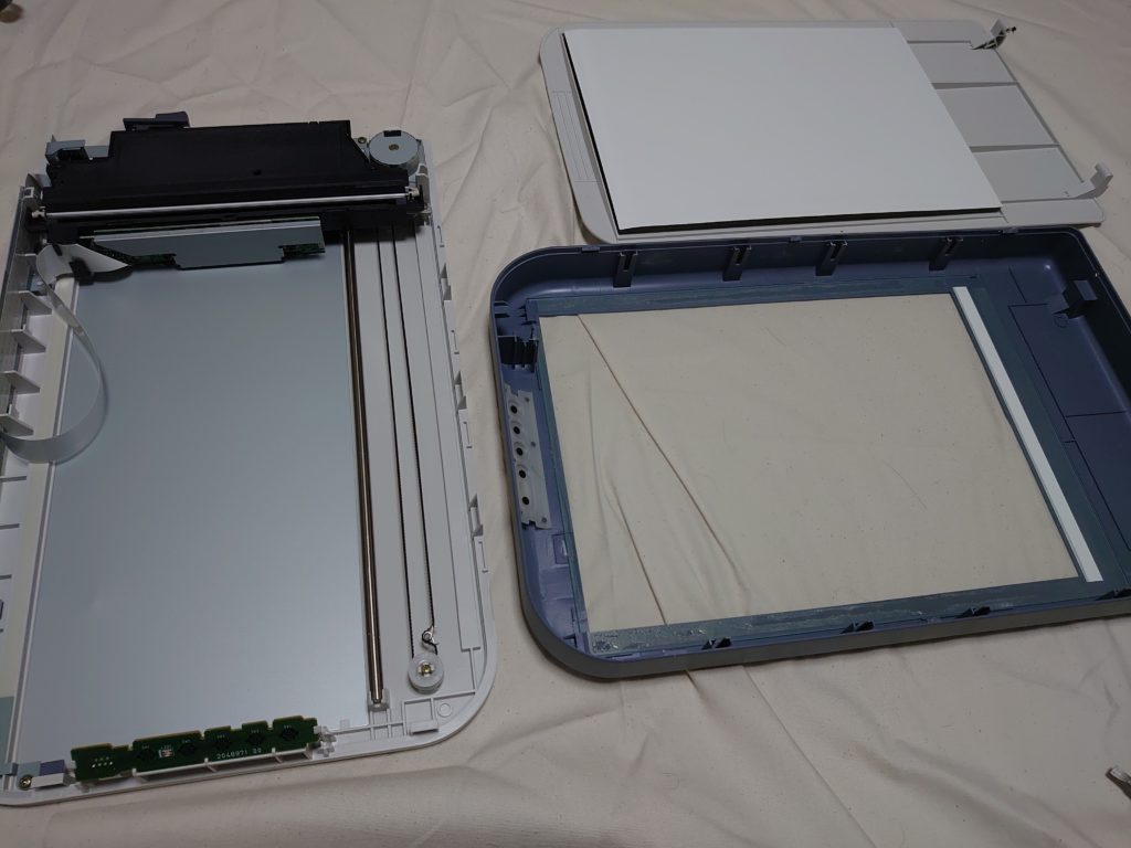 あとは、写真を取り忘れましたが、スキャナ部のガラス(スキャンする紙を乗せるところ)も拝借しています。なにかに使えそう。